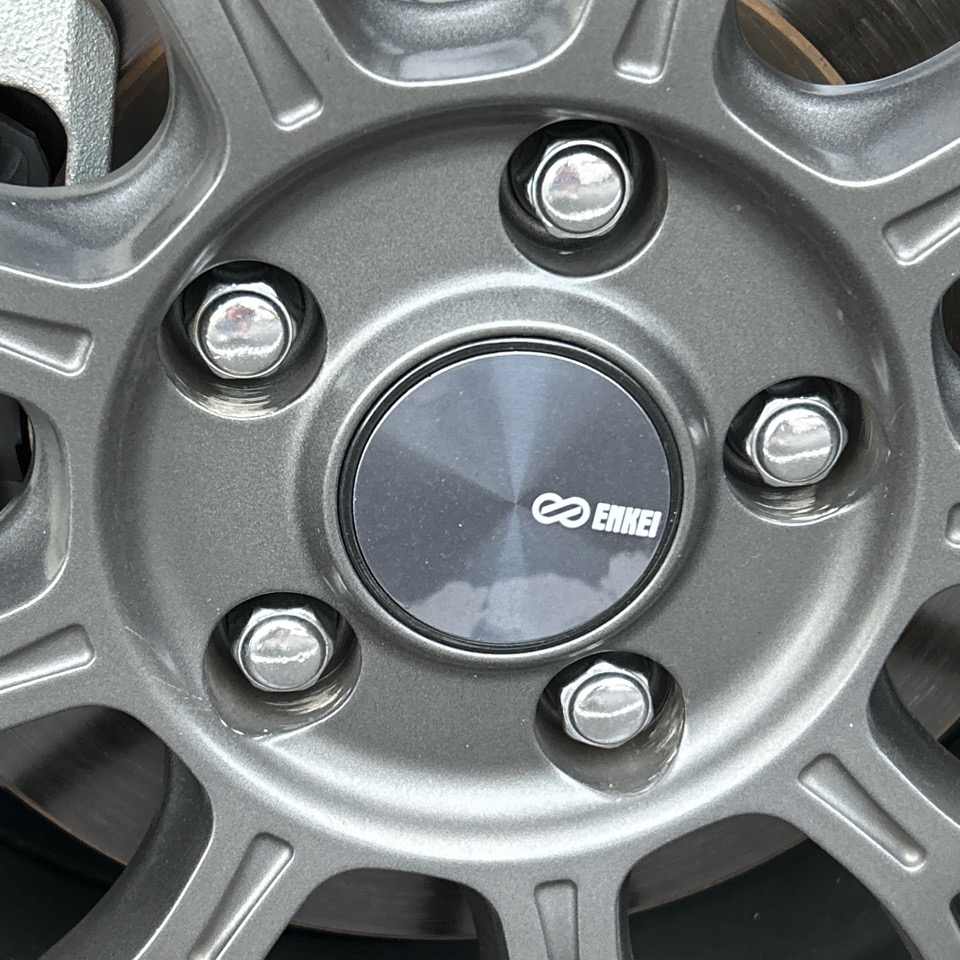 色々と調べたり、街中で見かけたホイールをチェックしたりして、車を購入して1年後くらいにENKEIのPFM1というホイールに交換しました。価格とサイズと見た目と重量と、様々検討した結果です。