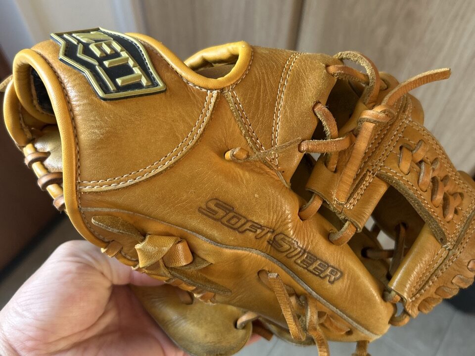 これは息子が小学校3年生(?)くらいの時に買った、キャッチボール用の最初のグローブ。実はまだ時々使っています。かなり小さいのですが、ピッチャーをする時や内野守備の練習には、小さめのグローブが良いようで時々使用しています。
