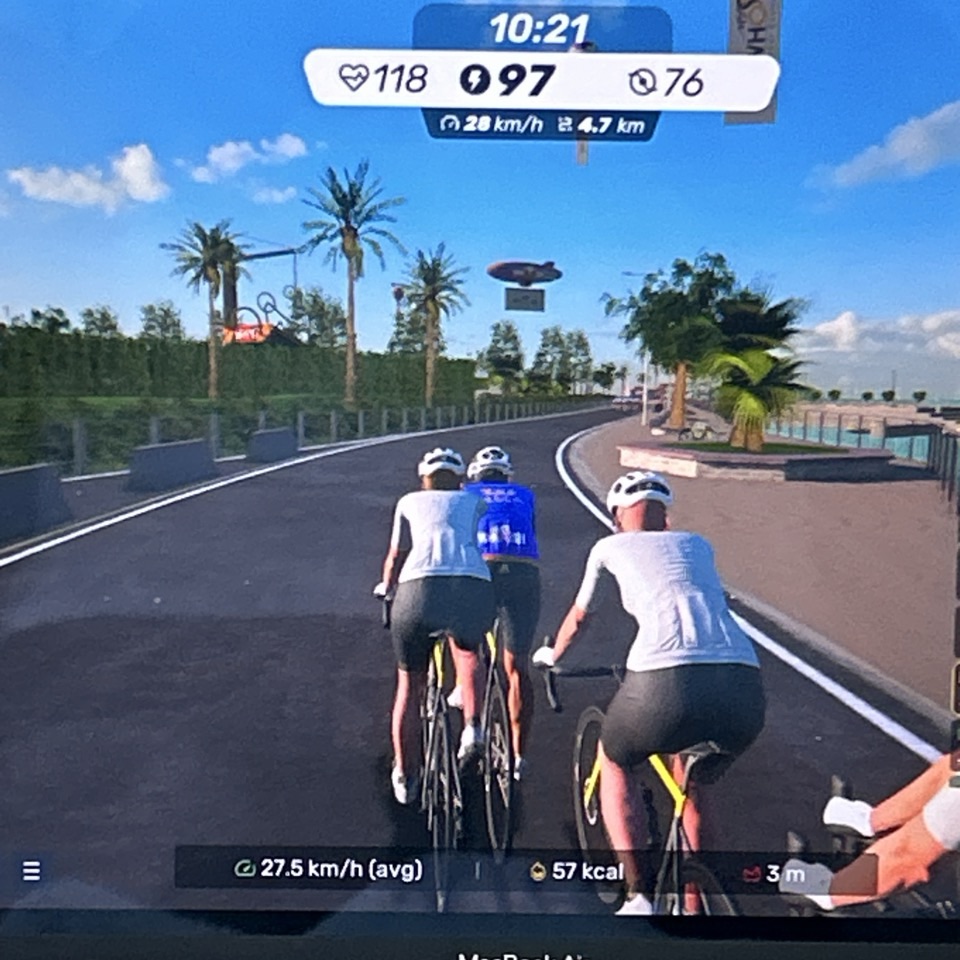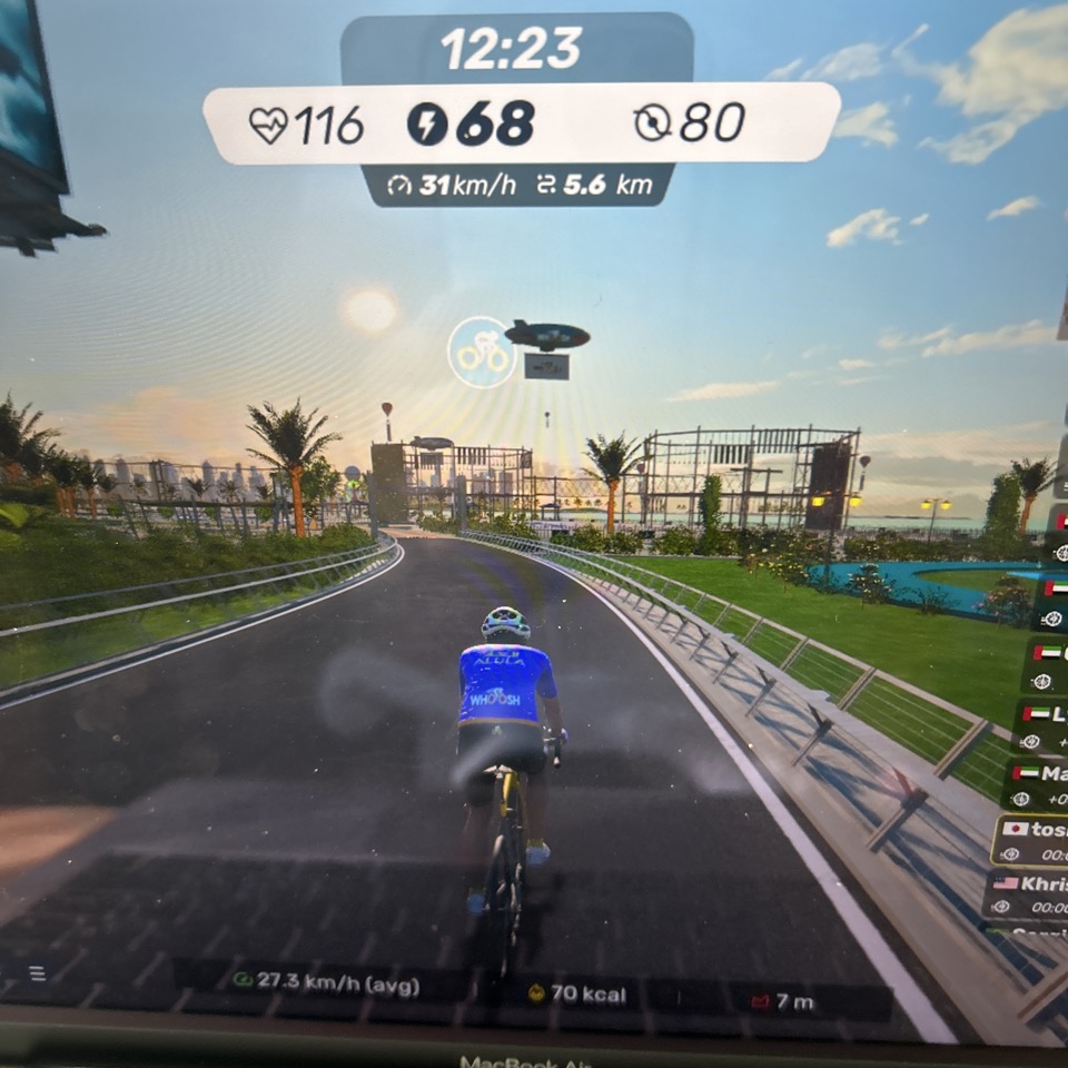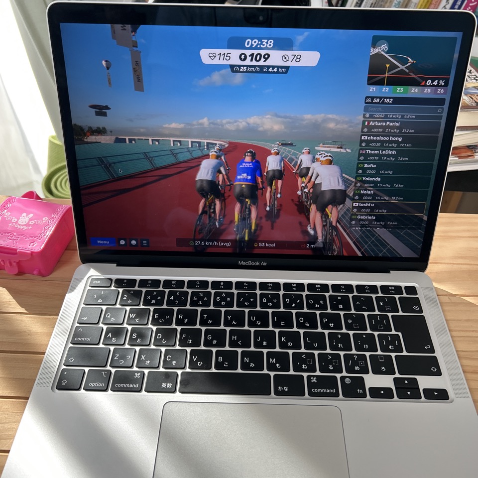 私はWhooshという無料のソフトを使用して、Bluetoothで固定ローラーを繋げて自転車を室内で漕いでおります。常に自転車は後輪を外して固定ローラーにつけたままですので、気が向いた時にMacBookを持っていけばすぐに自転車に乗ることができます。